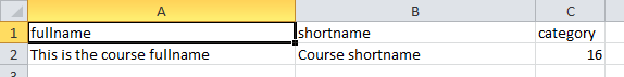 - Create new courses, or update existing ones: Where a course in the .csv has the same shortname as an existing course the settings are updated to match the file, new courses are created